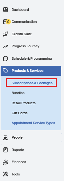 To create or edit a subscription to include roll over credits, go to the Products & Services tab tab