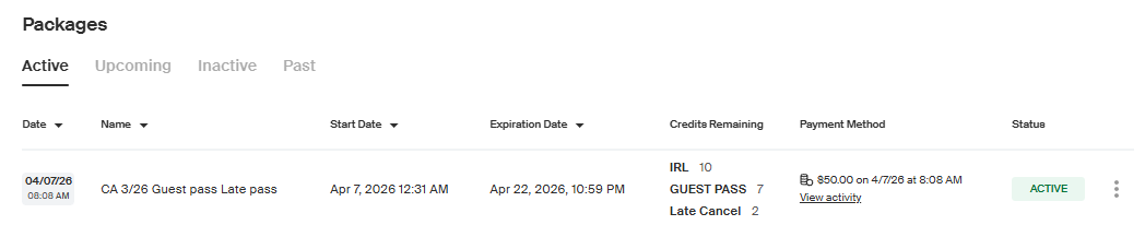 2. You can either click the checkout cart button at the top of the page, which lets you add multiple items to the cart: Memberships, Individual Classes/Sessions, and Retail items.