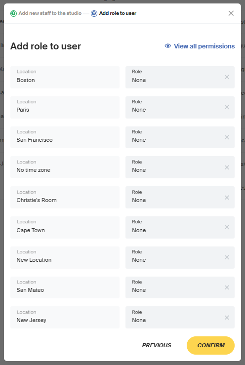 Select the appropriate role for this staff member, then click Confirm to complete the process. The client will now also have staff access with the permissions tied to their assigned role.