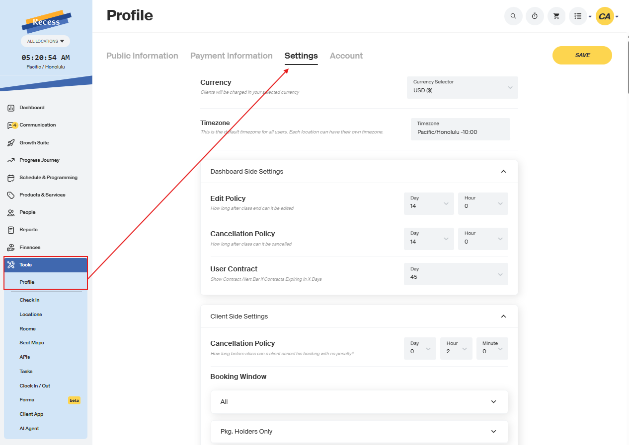 - Go to Tools > Profile > Settings
