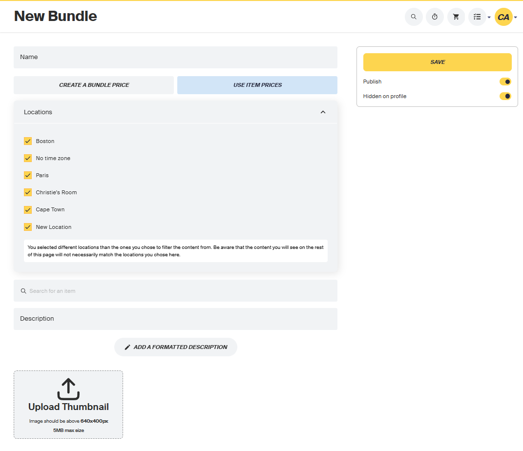 - Optional – Main Item: Selecting a main item means that when a client adds this item to their cart, the entire bundle will be added. Clients will not be able to purchase items individually.