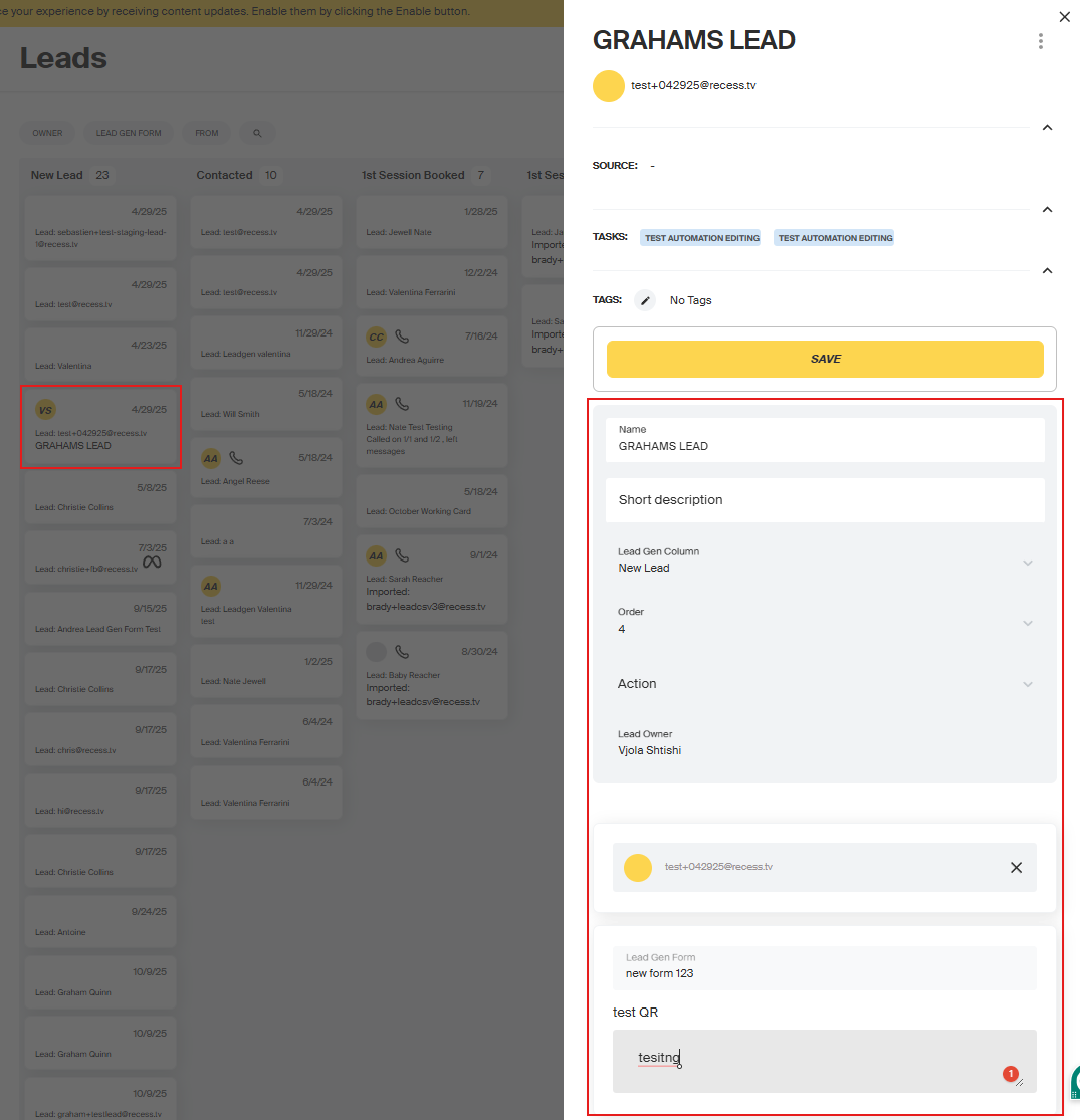 - Add a short note to the lead
