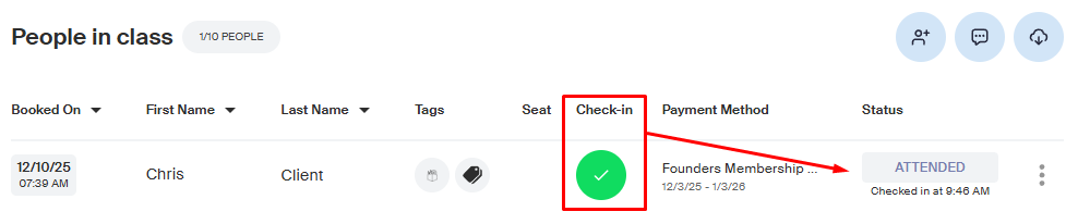 Checking clients in to an IRL/In-Person class is a great way to keep track of attendance.