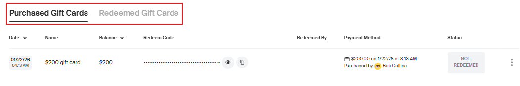 Redeemed Gift Cards