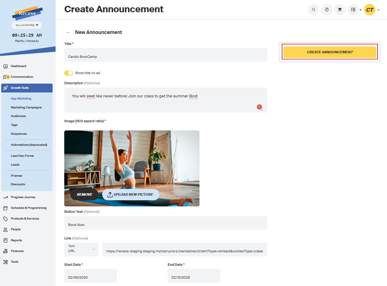 - Set appropriate timing - Schedule announcements to go live when clients are most active