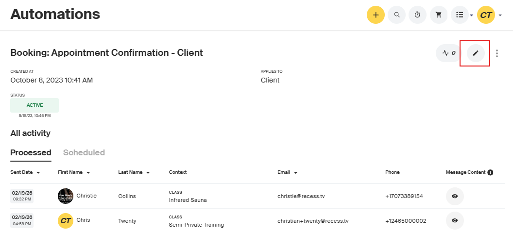 - Click on the automation to select it. In the top-right corner, click the pencil icon to open the editing options.