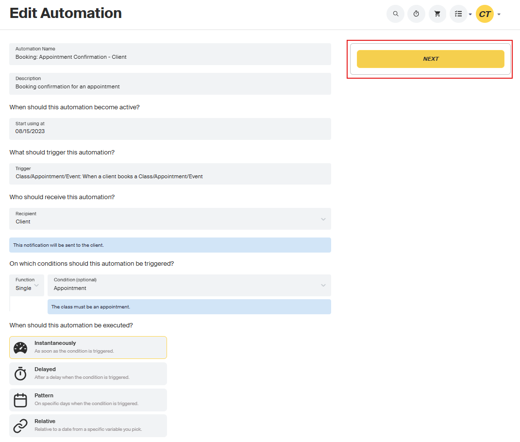 - When you're done, click Save. Your updated automation will go live immediately after saving.