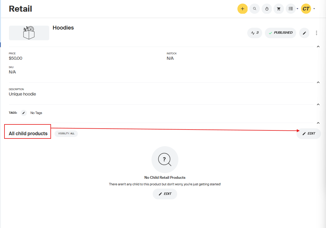 Once all attributes are added (you can add more for other products later), you'll want to go back to the Retail page and click the yellow "+" button and then Advanced