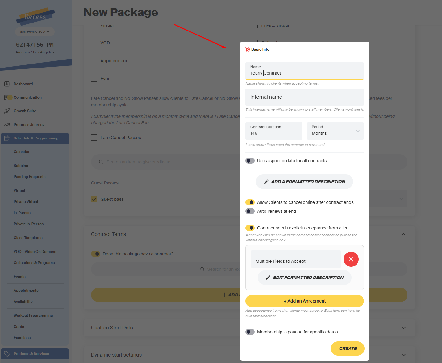 - If the client fails to accept the contract, they will be unable to use the package for class bookings.